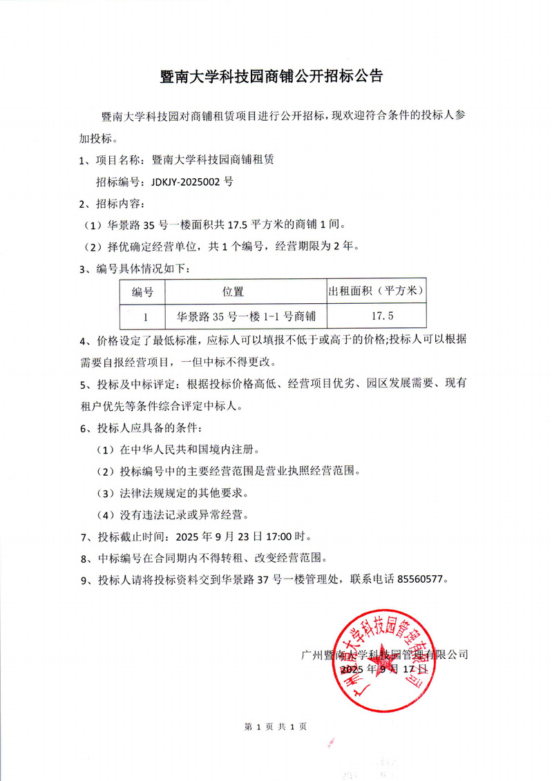 发布时间:2025-09-18 发布单位:资产经营有限公司 来源:暨南大学科技园